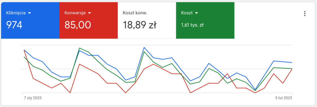 Kilka zmian przyniosło zmiany wręcz natychmiastowo. Znacząco obniżyliśmy koszt pozyskania klienta z 60 zł / kontakt do kwoty średnio 30-40 zł / kontakt.