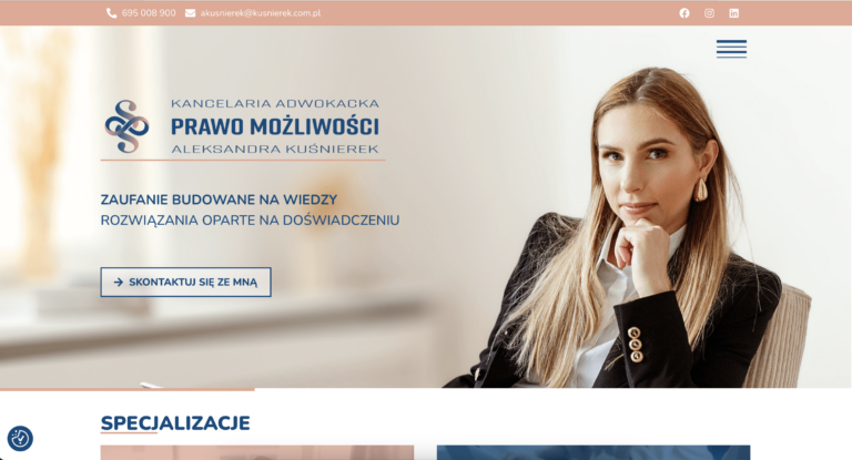 Dla kancelarii chcących szczegółowo opisać swoje specjalizacje i wykorzystać stronę do dalszych działań marketingowych.​